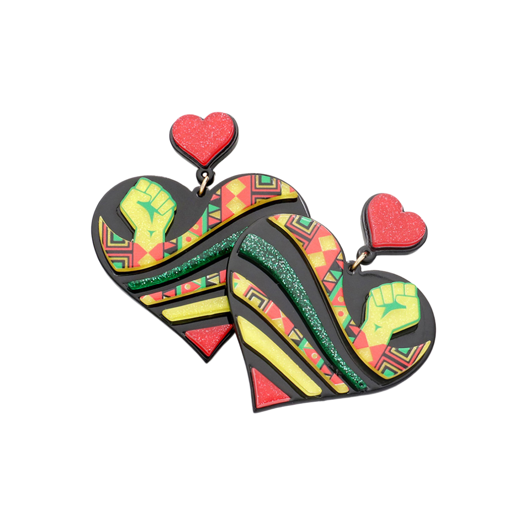 Commemorate and celebrate Juneteenth in these heart-shaped earrings. These earrings are for pierced ears.