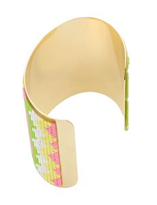 Pink, Green, Yellow, and White cuff bracelet.