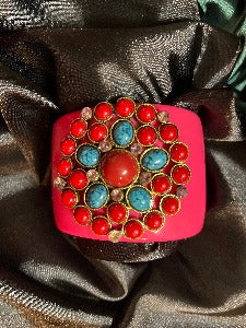 Fuchsia bracelet with red and jade stones and pops of bling.